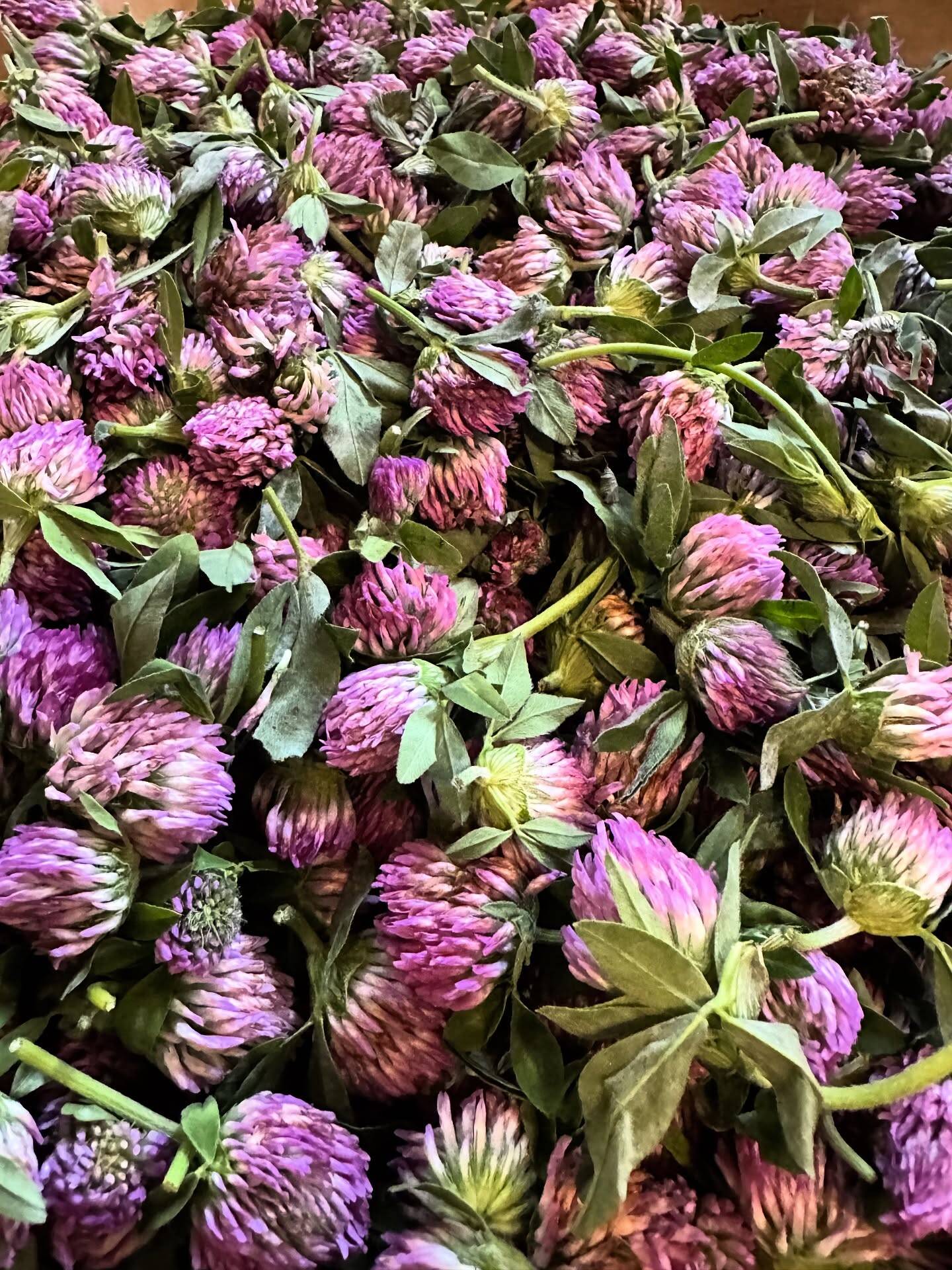 On the subtle level, Red Clover vibrates right along the heart‑center meridian—opening circulation, soothing heat, and restoring the emotional “flow state” we lose when life feels like dial‑up internet. I also believe because of its physical actions on the throat that it also works on the Throat chakra and may help us to release and let go of anything we have wanted to speak but held onto for too long. It helps us find the language we need to speak our truth in a gentle and loving way. We recommend brewing a cup of the flower and drinking as a tea before having a courageous conversation and setting the intention that your words will be received with love and truth.